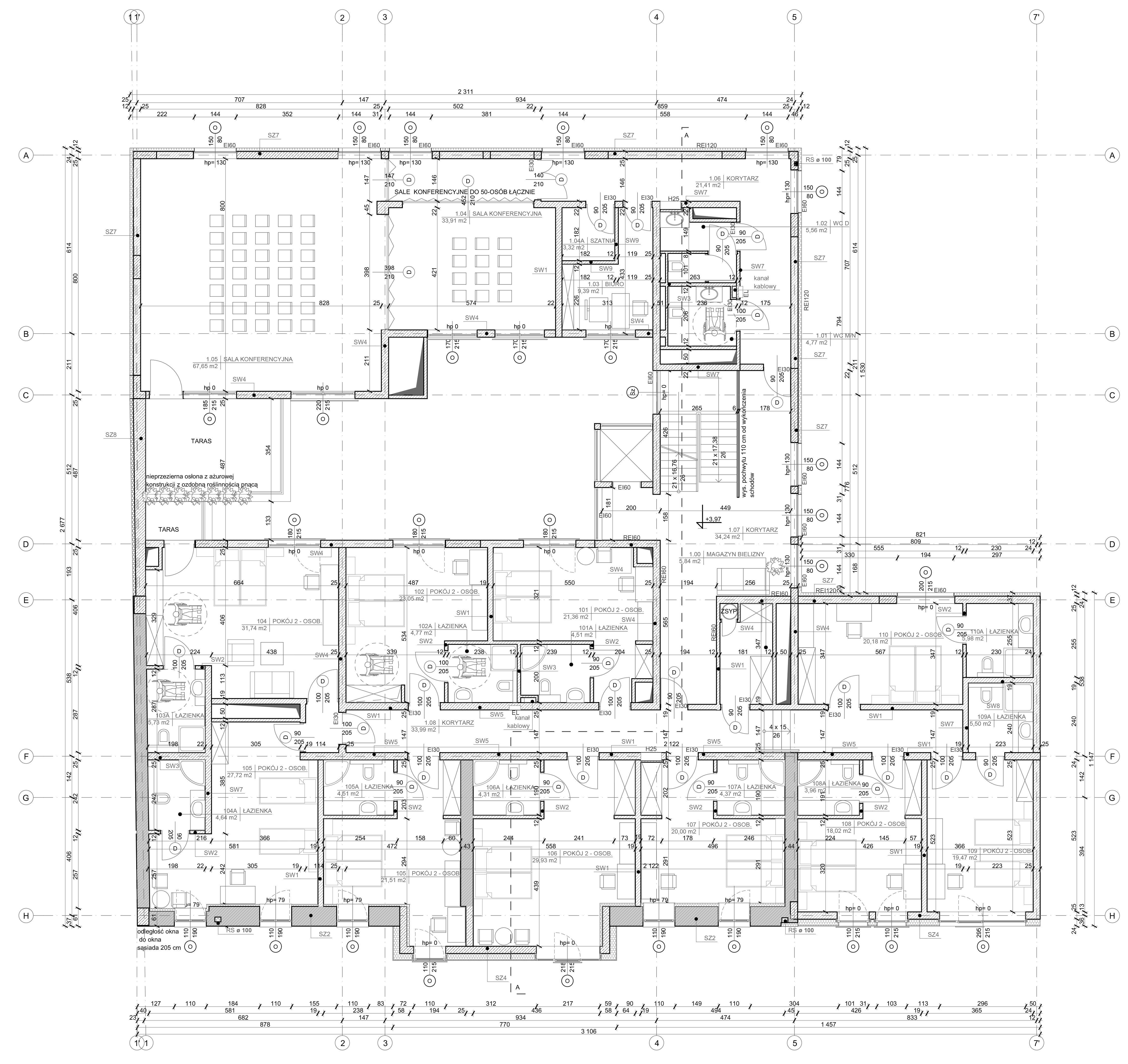 Naszym celem było stworzenie hotelu wyjątkowego — miejsca, które nie tylko odpowiada na potrzeby współczesnego biznesu, ale także buduje emocje i pozostaje w pamięci. Chcieliśmy zaprojektować obiekt wyróżniający się na tle innych hoteli, posiadający własną tożsamość i niepowtarzalny charakter.