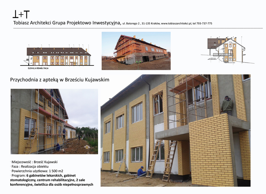 Program: 6 gabinetów lekarskich, gabinet stomatologiczny, centrum rehabilitacyjne, 2 sale konferencyjne, świetlica dla osób niepełnosprawnych, apteka